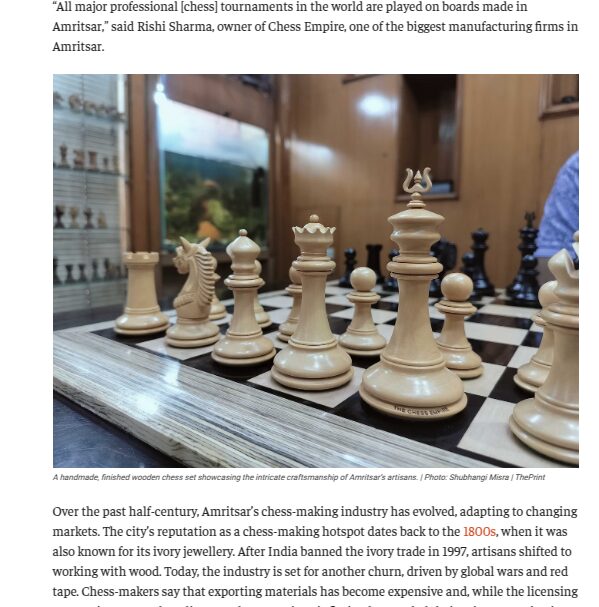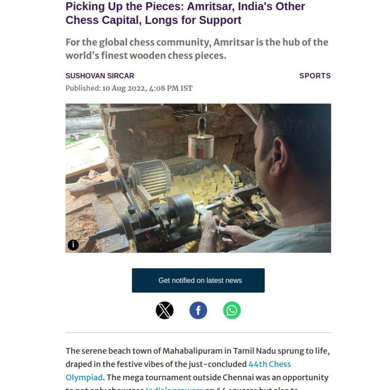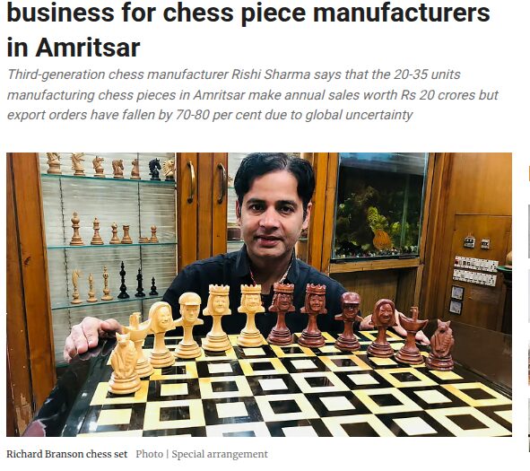 The Chess Empire is proud to update you on the popularity and growth of the company worldwide. There are many news channels, print media, social media channels and websites has made various documentaries on The Chess Empire company for producing the finest and best quality chess sets and games. Our traditional craftsmanship has been shown by many famous news channels like Discovery channel, Asia Featured, Zee News Punjab Editor , State Channels as well many news papers. Being the oldest chess manufacturer from India since 1962 with third generation experience in chess industry, (The Chess Empire) responsibility for manufacturing and designing the best chess set is now more focus and committed for perfection .