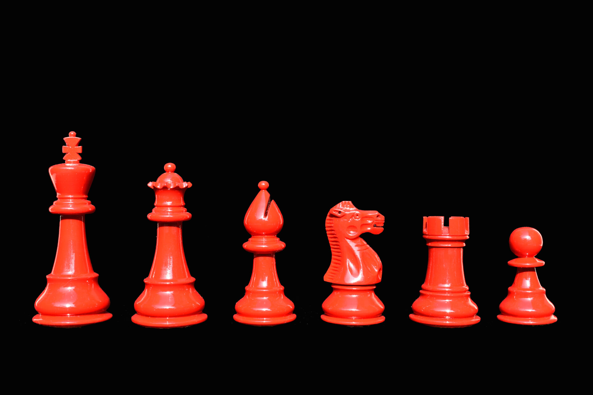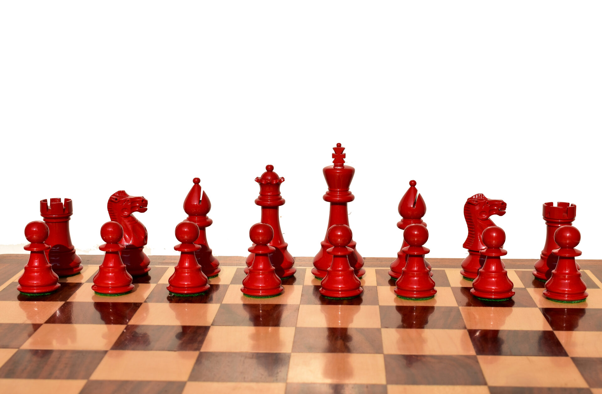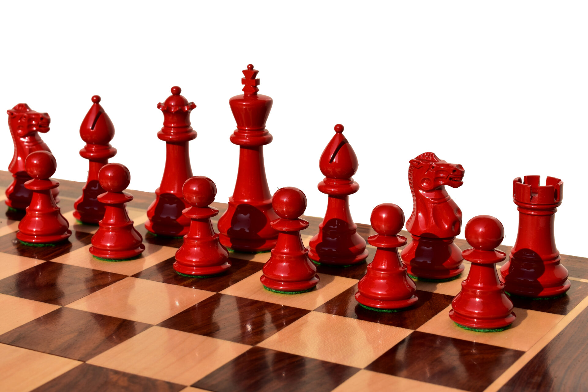 Dark Wood Chess Pieces: Red Lacquered Boxwood.