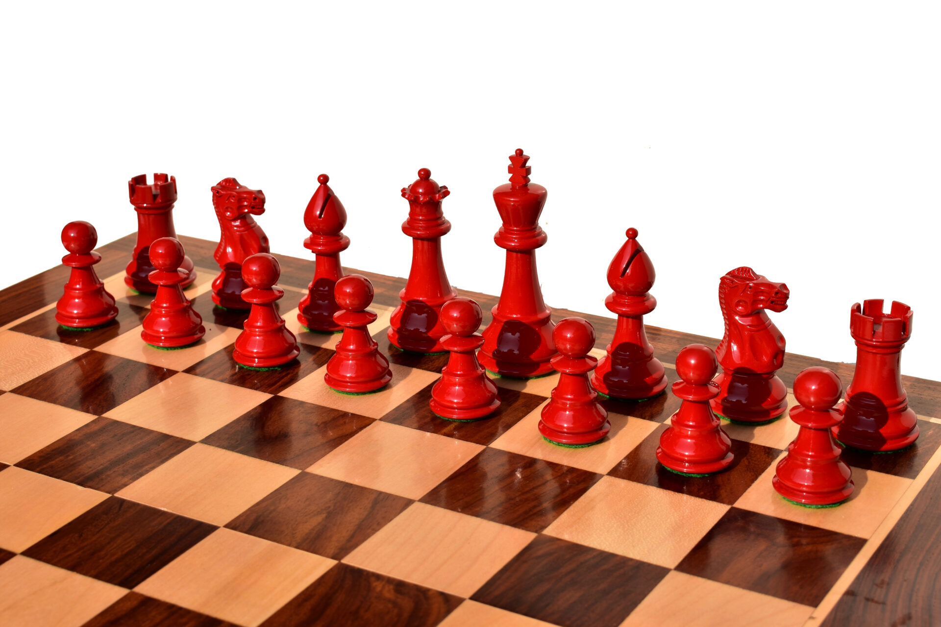 The Classic Series chess set is hand carved with the mesmerising workmanship on individual chess piece and this is one of the very popular chess set, Originally designed by The Chess Empire in 2006, available in various sizes and wood combinations. The knights are spectacular crafted from a solid wood block with the complete details. The Chess Pieces are hand carved by our skilled master craftsmen and crafted out of highest grade exotic woods with the luxurious billiard cloth base pads on it. The Chess set is heavily weighted with the natural hand polish on individual chess piece for rich, long lasting shine and it also includes two extra queens.