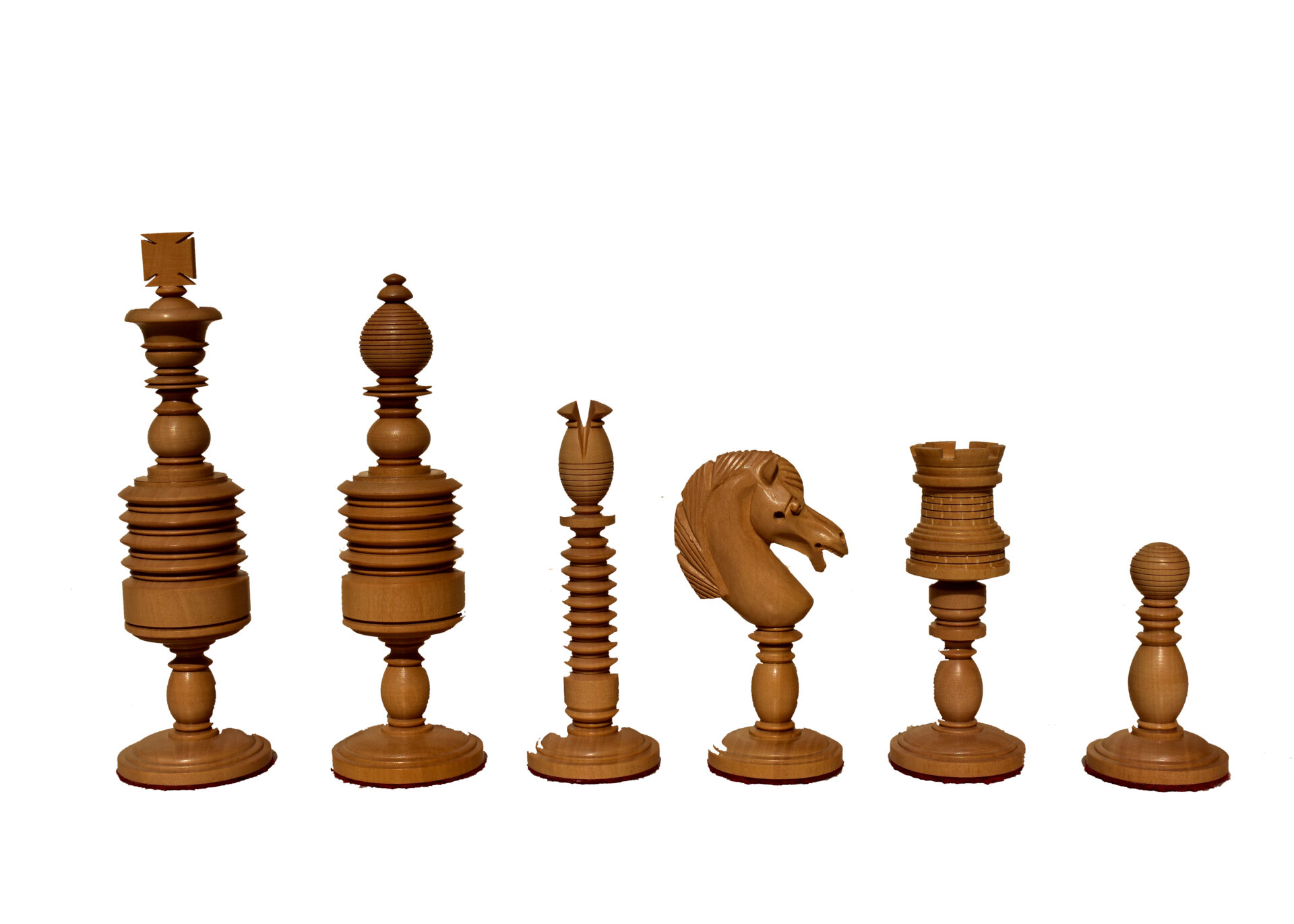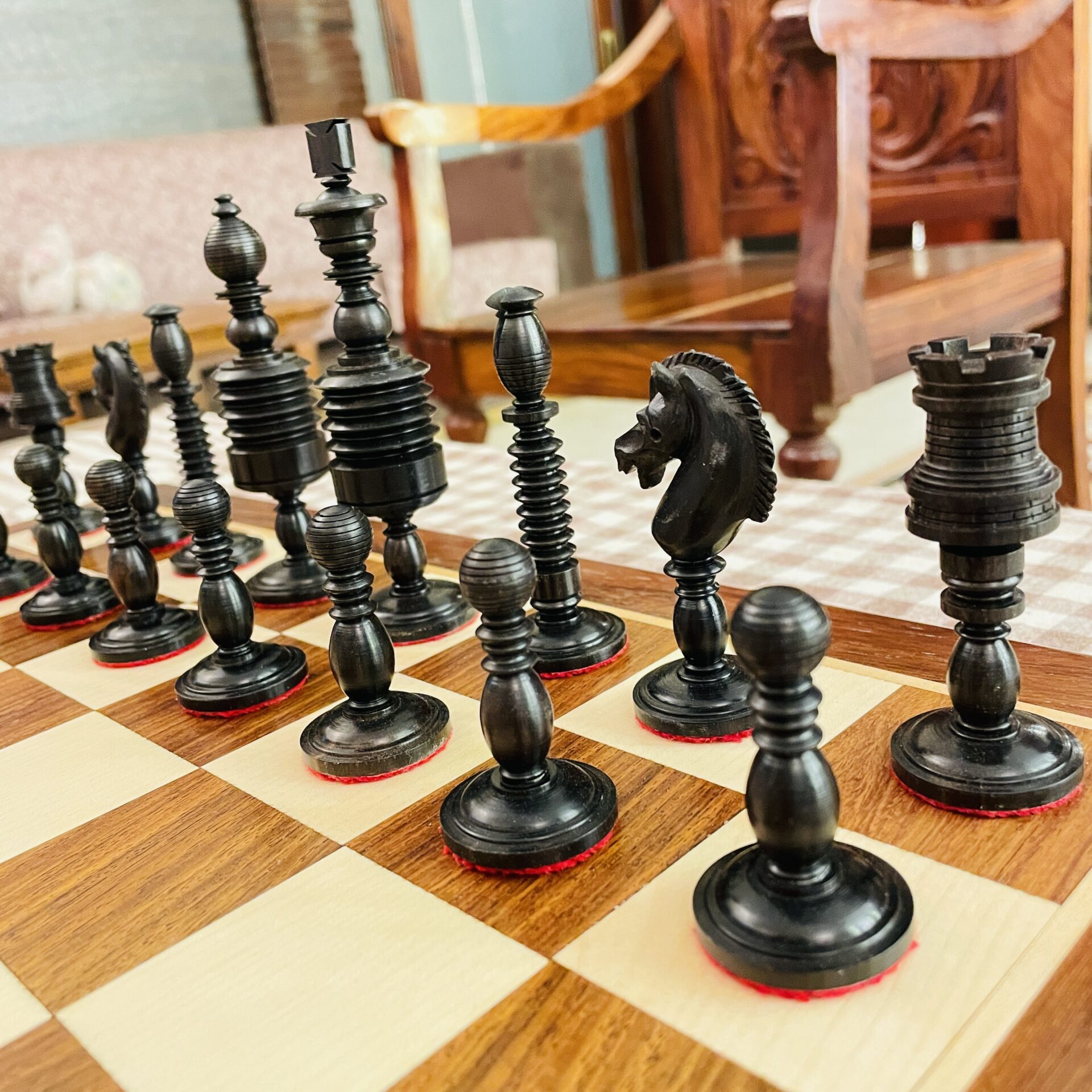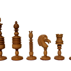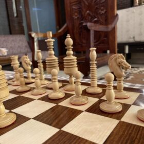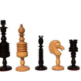The beautifully crafted Timeless English Barleycorn chess set is the epitome of meticulously workmanship on the Knights with complete details from King to Pawn. Rebirth the golden era of extinct chess set is reproduced with the aim to introduce the immensely rich craftsmanship.